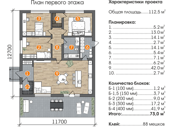 Общая площадь 112,5 кв.м.